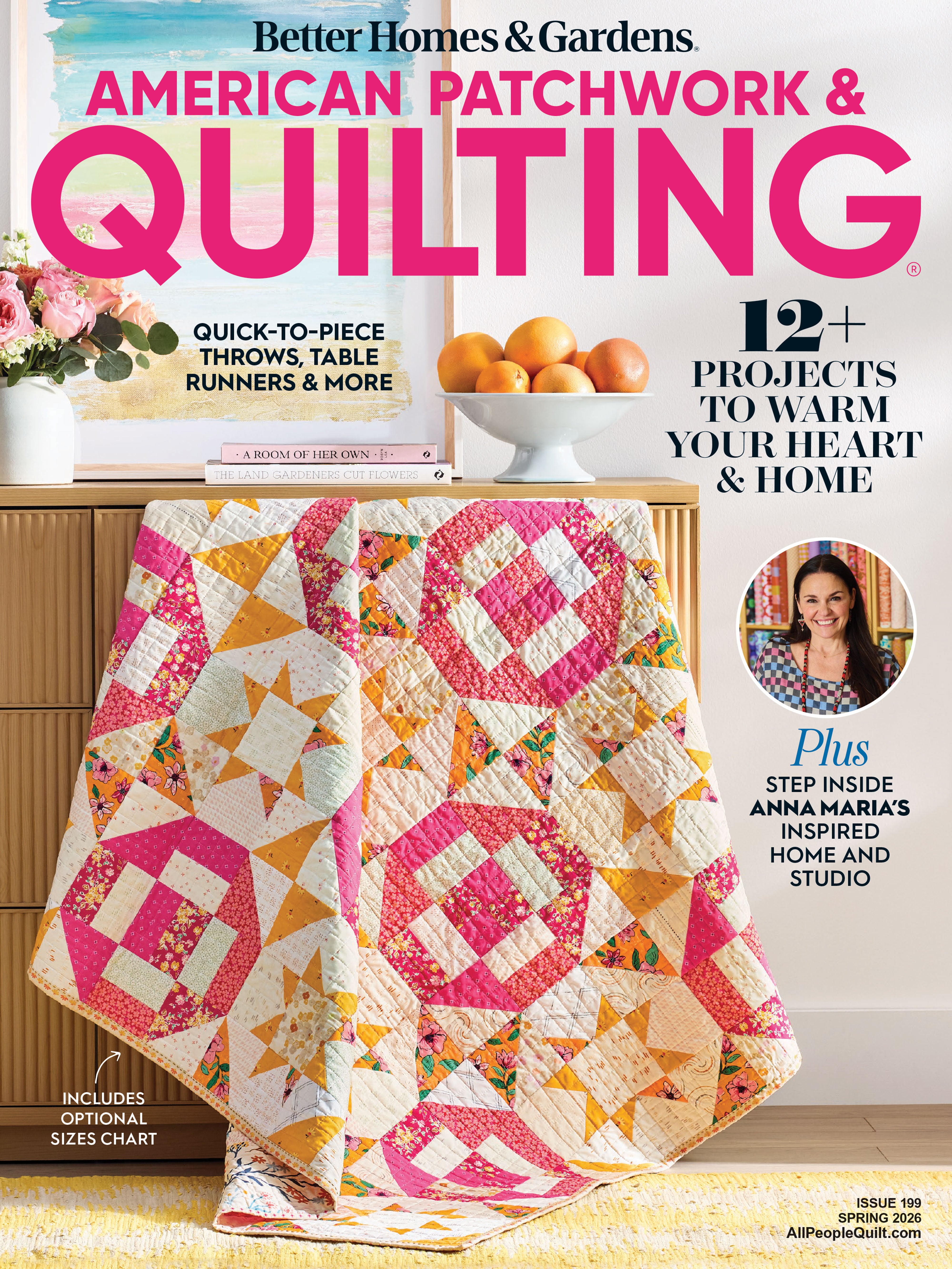 Create a stunning throw quilt with this vibrant fabric kit featuring the "Paper Cuts 2" collection by Rashida Coleman-Hale and "Starry 2025" by Alexia Marcelle Abegg, both from Ruby Star Society. Designed by Alice of Textile Outpost and featured in the Spring 2026 issue of American Patchwork & Quilting magazine, this project combines modern aesthetics with approachable quilting techniques. This X Marks the Spot design finishes at 72½ inches square, making it the perfect size for layering on a bed or draping over a sofa. Fabric for top and binding included in kit, along with precut friendly fat quarters. Pattern required and sold separately.