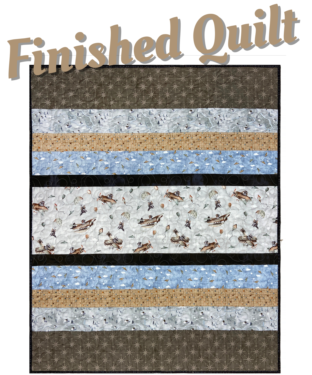 Take flight with the Great Journey Finished Baby Quilt, featuring playful fabric designed by Bernadette Urbanovics for Figo Fabrics. Perfect for aviation enthusiasts, this quilt is the perfect gift for your little one.