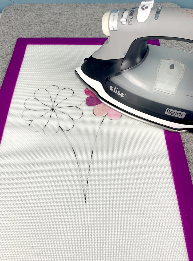 Fusible Applique - Place the applique design under the Appli-Fuse mat. Since the mat is transparent, the cut applique shapes can be placed perfectly. Since it is heat resistant, multiple layers can be placed simultaneously and pressed with a hot iron. The layered appliques can then be picked up as one piece and placed on the background fabric. An added bonus? The mat is slightly tacky so the pieces won’t migrate when positioned.