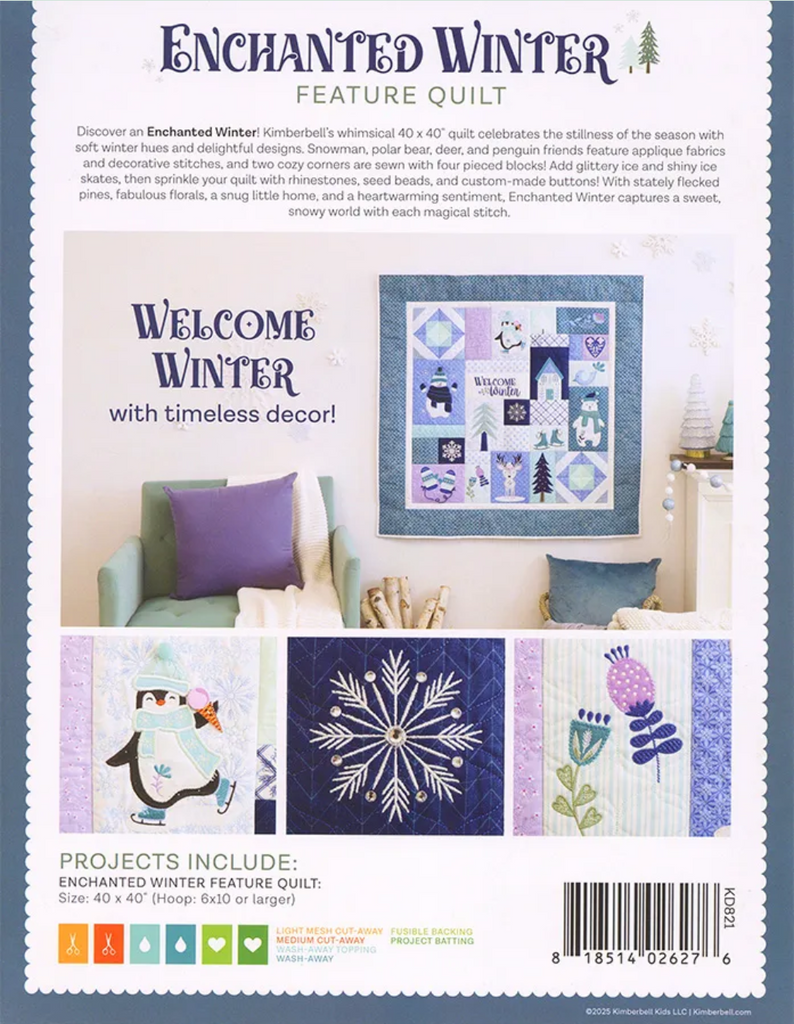 Discover the magic of winter with this delightful Kimberbell Enchanted Winter Pattern Book! Packed with charming embroidery designs, this project booklet guides you through creating a stunning quilt from start to finish. You'll receive complete instructions plus embroidery files in various formats—all accessible through an exclusive one-time redemption code. Perfect for bringing cozy, whimsical winter vibes to your creative space.
