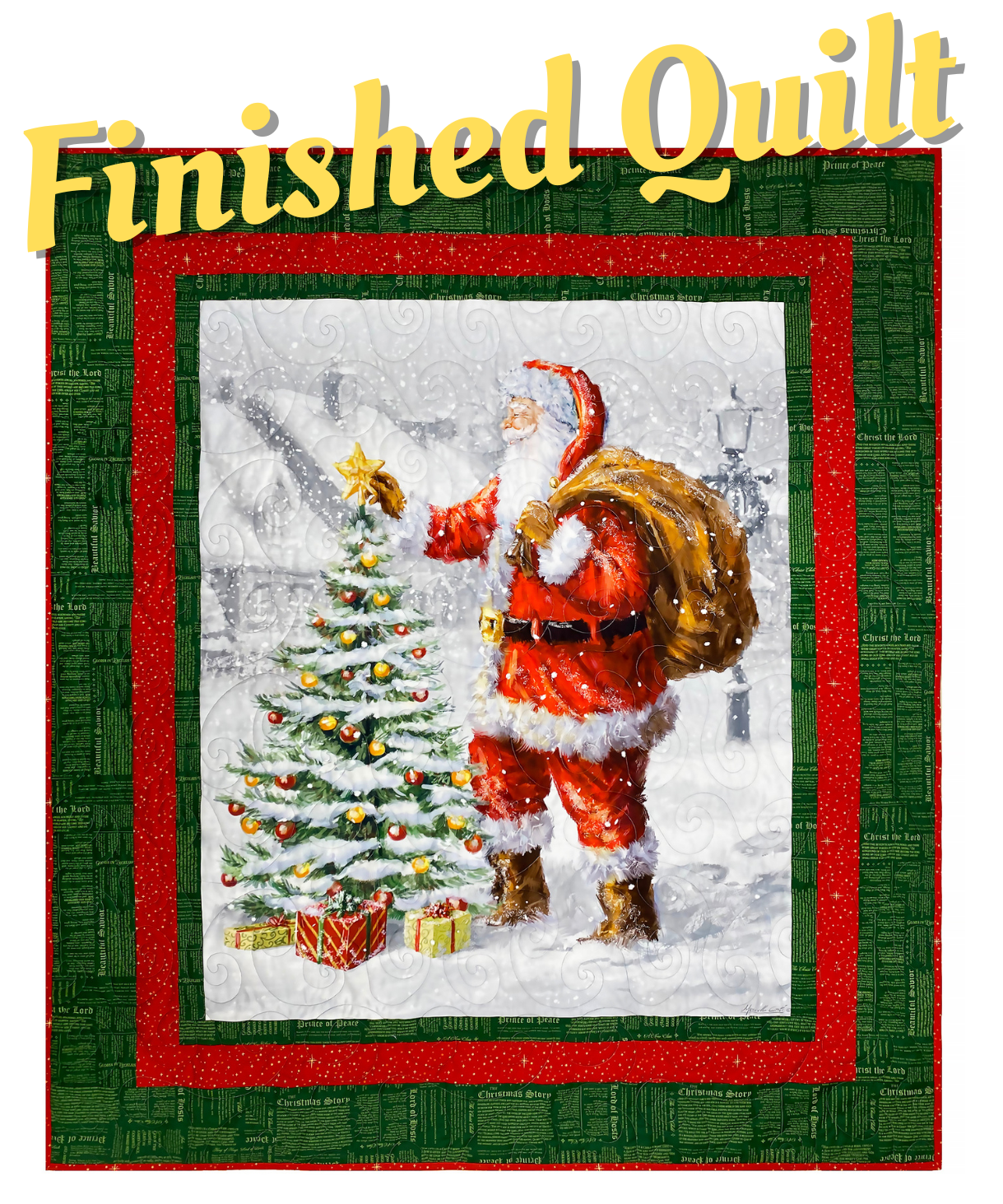Welcome the holiday season with the cozy and festive Christmas Wishes Finished Quilt! This quilt features the charming Christmas Wishes fabric line by RBD Designs for Riley Blake, creating a vintage and whimsical feel. Santa putting the star on a tree adds a touch of nostalgia to any home this Christmas.