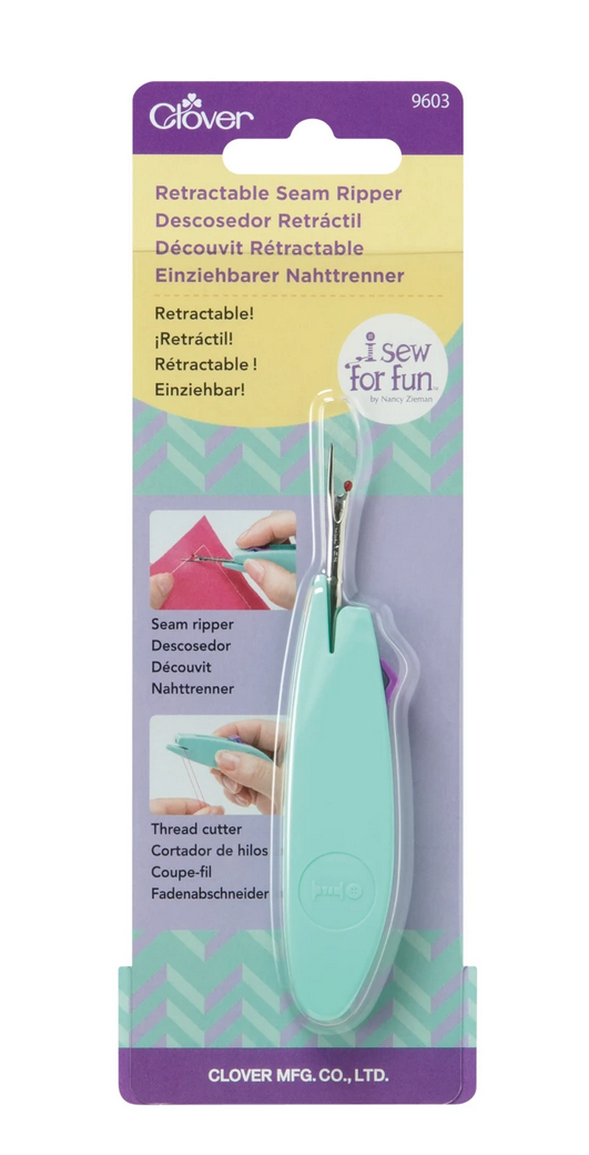 This retractable Seam Ripper from I Sew for Fun has a comfortable feel and easily cuts stitches. Use seam ripper when closed for cutting threads.