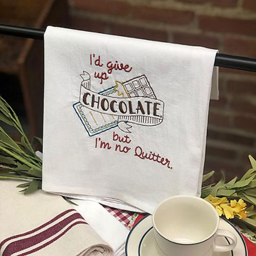 Embroidered Flour Sack Towel - I'd Give Up Chocolate