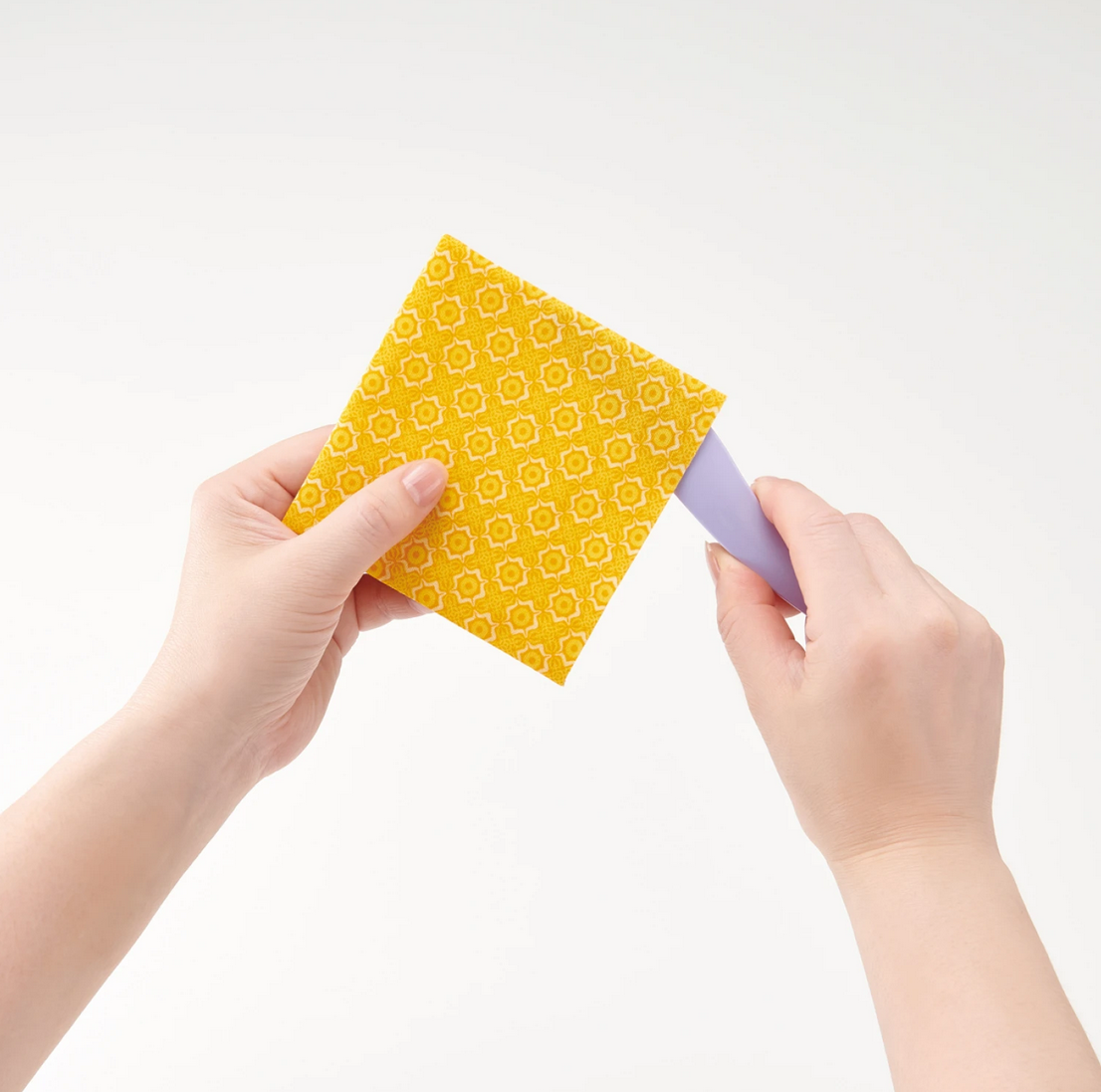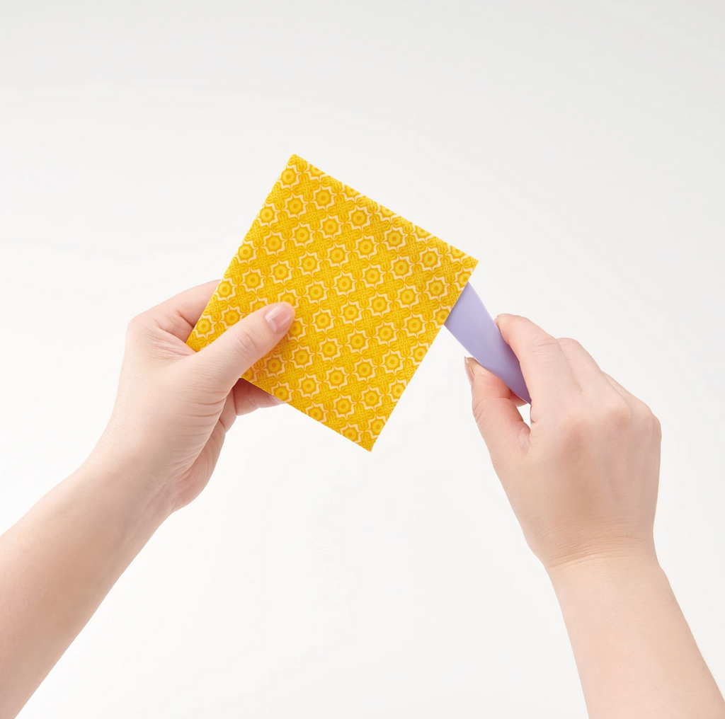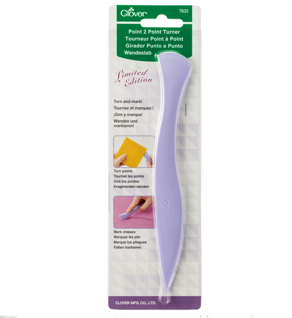 Two points are available, one at either end of the tool. One is a sharp point that is perfect for tight, limited spaces like collar points. The other point is on the edge of the spatula shaped end. This is ideal for points with a little more access. The unique shape of this point allows you to approach the point from the side, pushing with the grain of the fabric. Pressing out in this manner with the grain helps you avoid stretching or distorting your fabric. The long sweeping edge of the tool is perfect for turning long sweeping seams. For turning seams with a shorter radius the spatula shaped edge is ideally suited. With a flip of your wrist you can switch from one tool and application to the other. Easy and convenient.